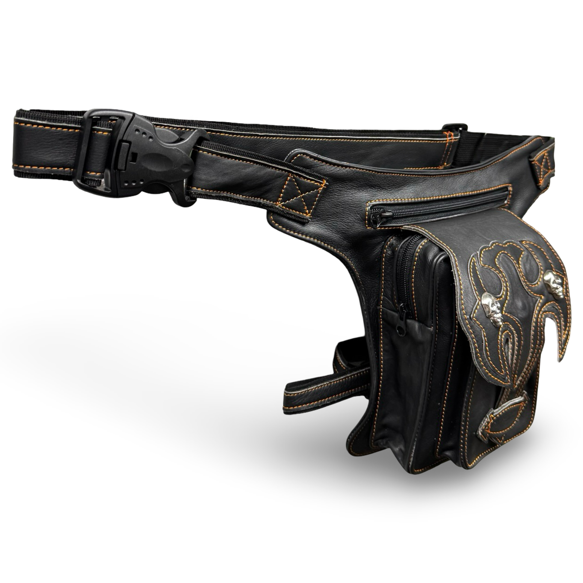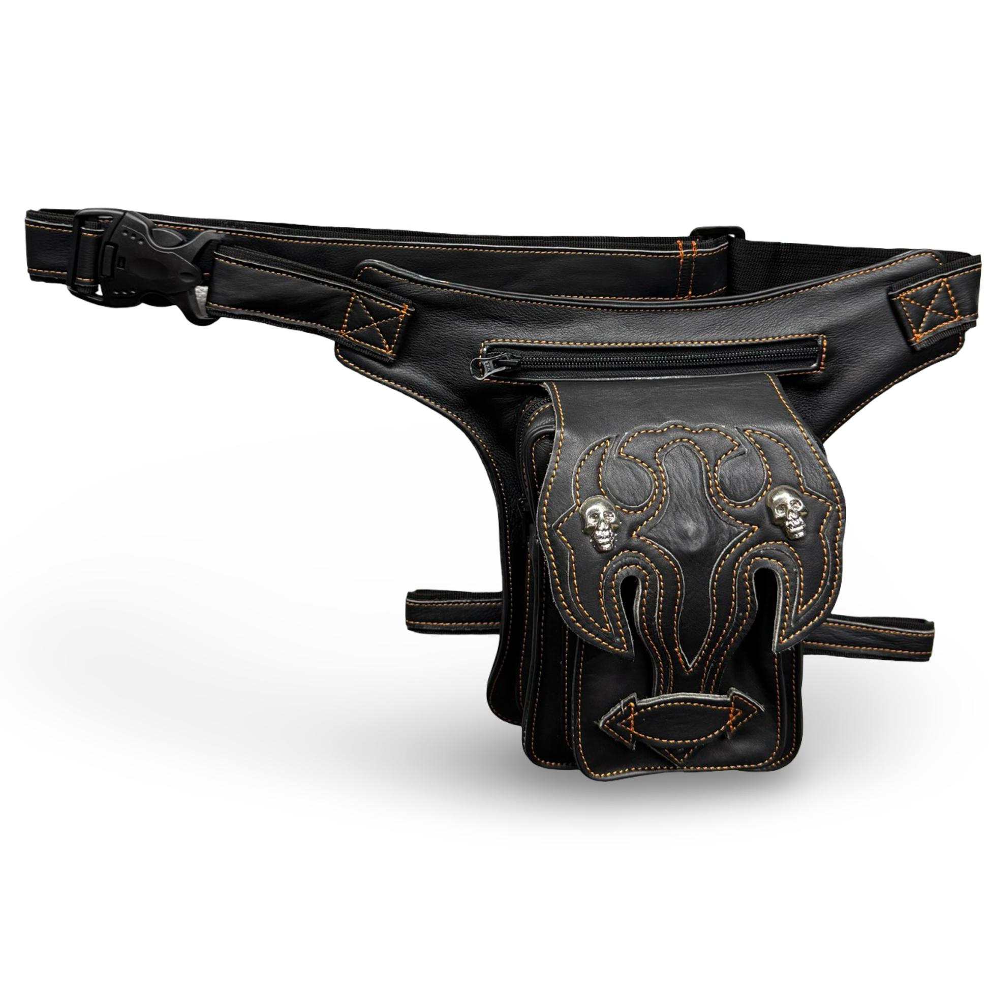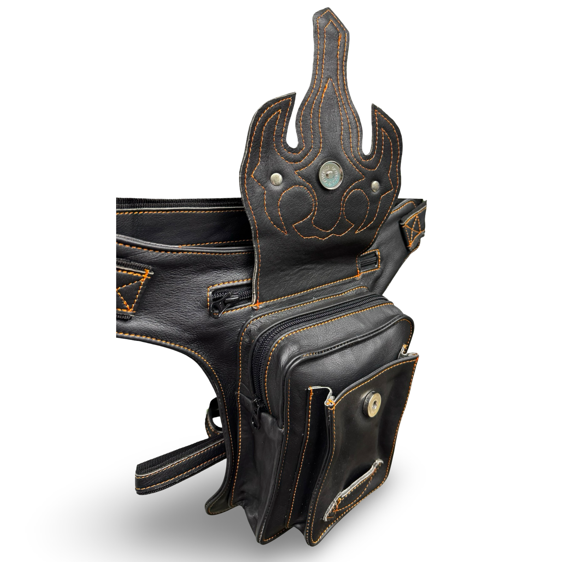 Leder Beintasche Herren Damen Motorrad Tasche Hüfttasche Braun Inferno Orange