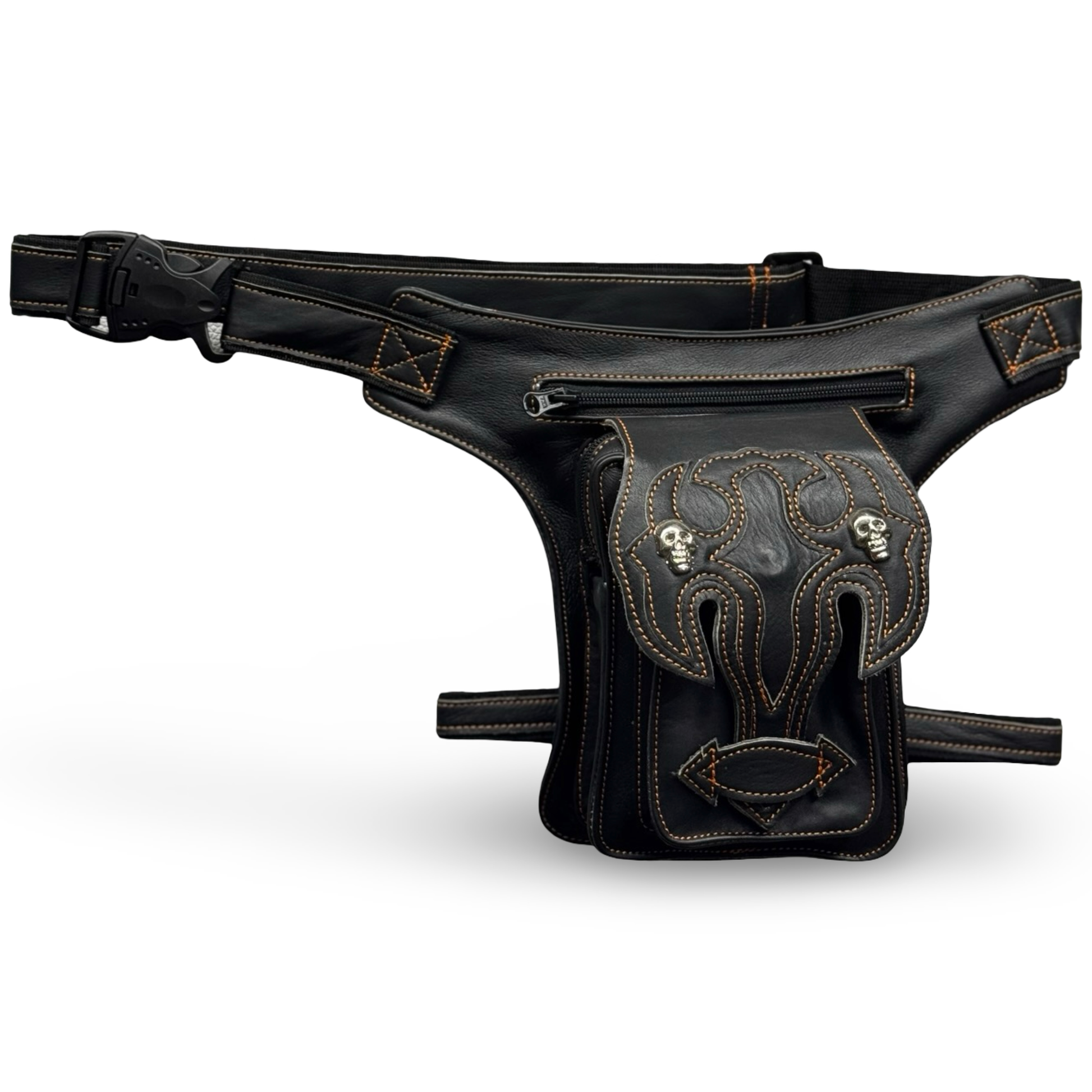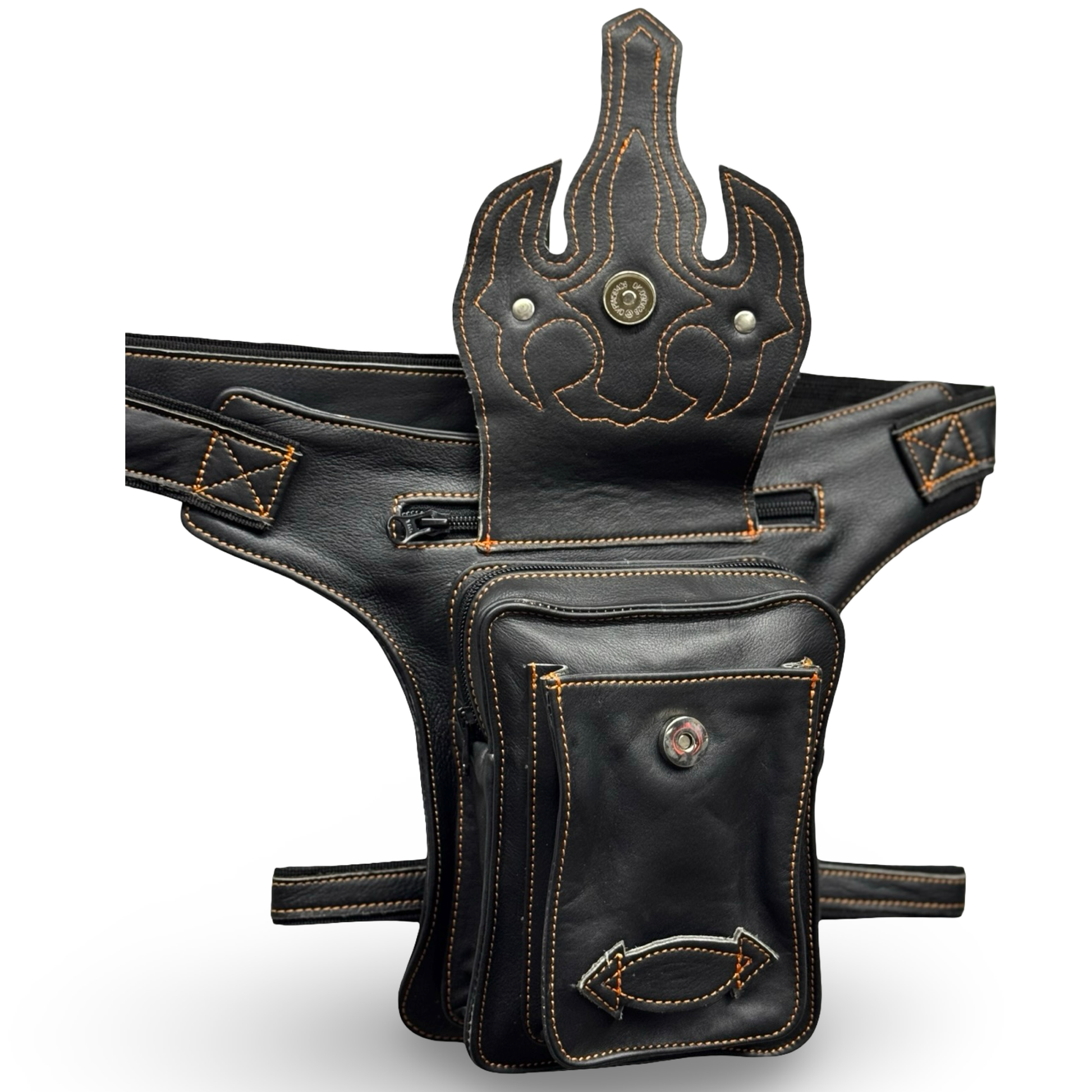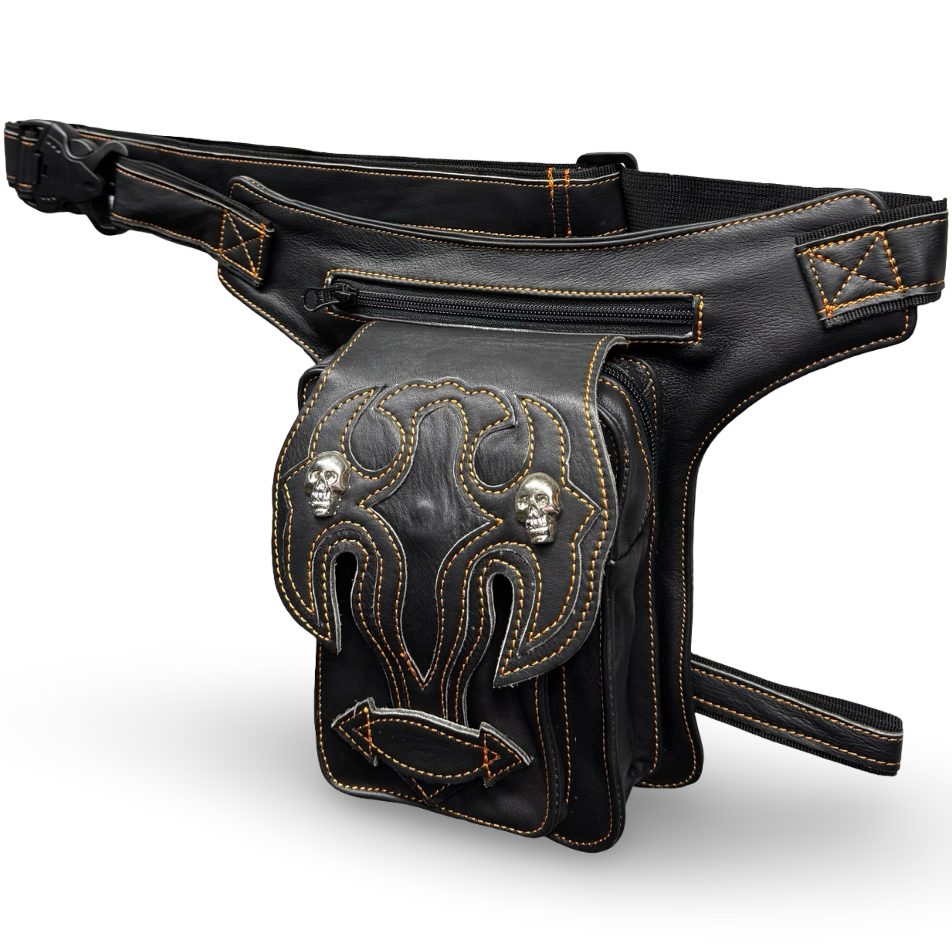 Leder Beintasche Herren Damen Motorrad Tasche Hüfttasche Braun Inferno Orange