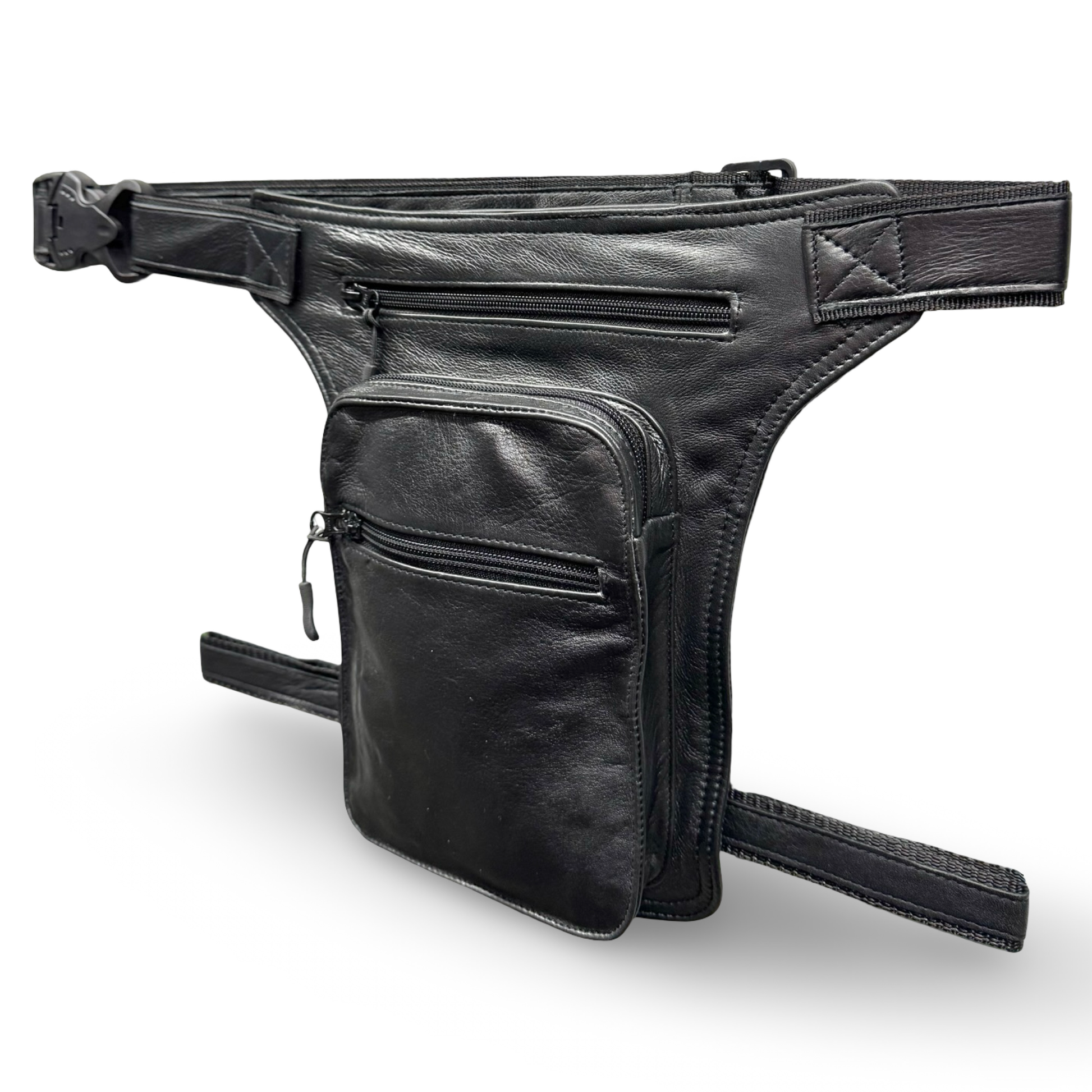 Leder Beintasche Herren Damen Motorrad Tasche Hüfttasche Braun Pure Black