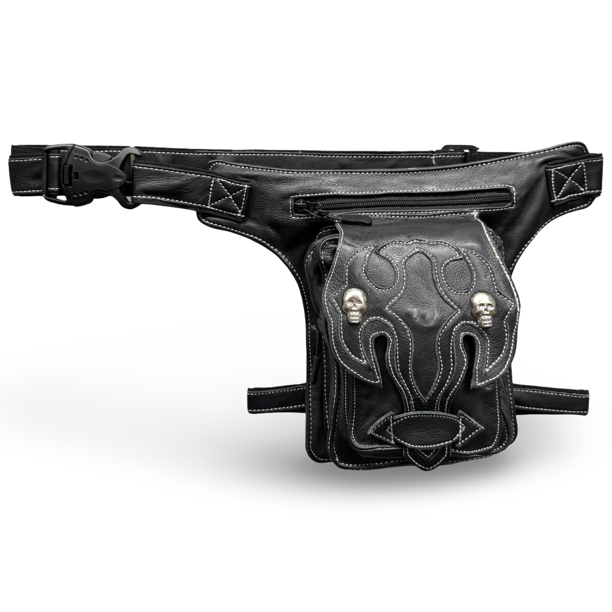 Leder Beintasche Herren Damen Motorrad Tasche Hüfttasche Braun Shadow Skull