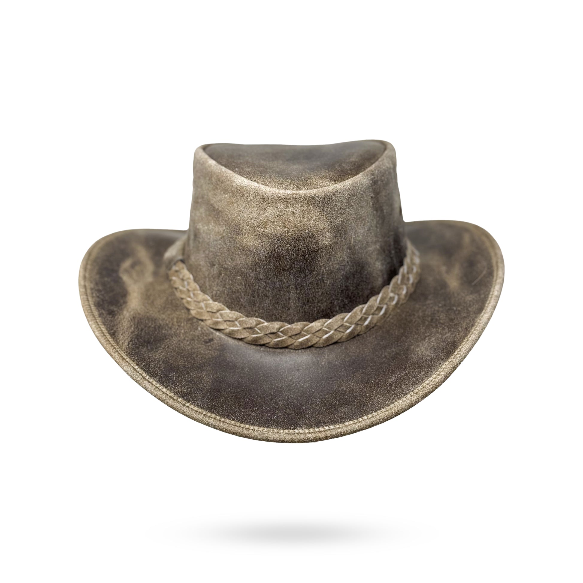 • Hochwertiger Cowboyhut aus Crazy Horse Leder für authentischen Wild-West-Look